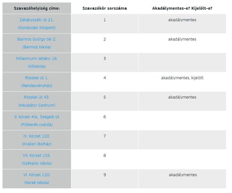 Az I., II., IV., V. és a IX-es szavazókör akadálymentes.