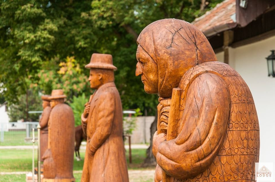 A Rózsa Sándor Élményház előtt látható Rózsa Sándor első köztéri faszobra, helyi mesterek keze munkája. Mellette kapott helyet Ásotthalom másik ikonikus alakjának - Pipás Pistának - a szobra, illetve emléket állítottak a tervezők, szervezők az átokházi boszorkák és a pásztorok legendájának is.
