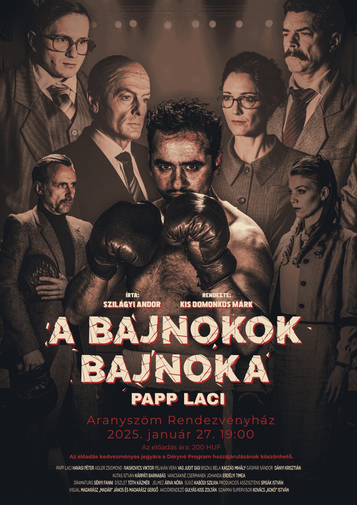 Az előadás a ’60-as évek Magyarországának kirakatvilágába kalauzol. A történet középpontjában a profi világbajnoki mérkőzésre készülő Papp László áll. Papp Laci és Adler Zsigmond 1964. novemberében felkeresi Biszku Bélát, a Központi Bizottság titkárát, hogy addigi nemzetközi sikereire hivatkozva rábeszélje utolsó mérkőzésének engedélyezését.