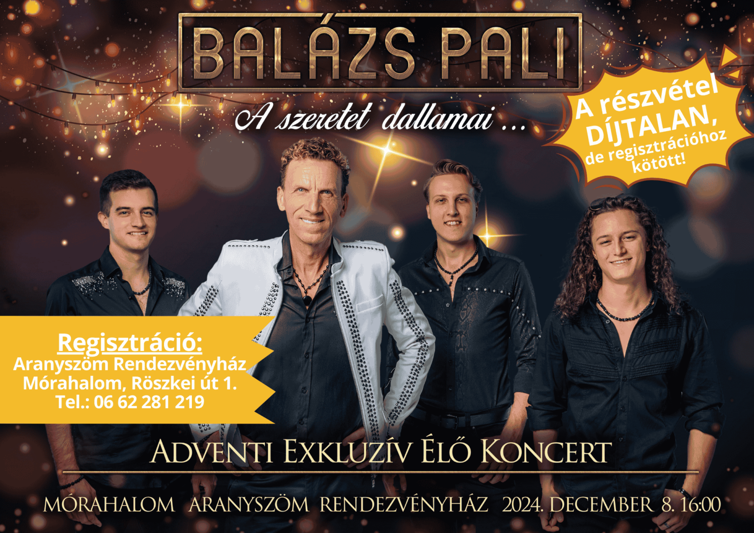 December 8.-án egy adventi exkluzív élő koncerttel készültünk Nektek, ugyanis a Balázs Pali és társai gondoskodnak a jó hangulatról!