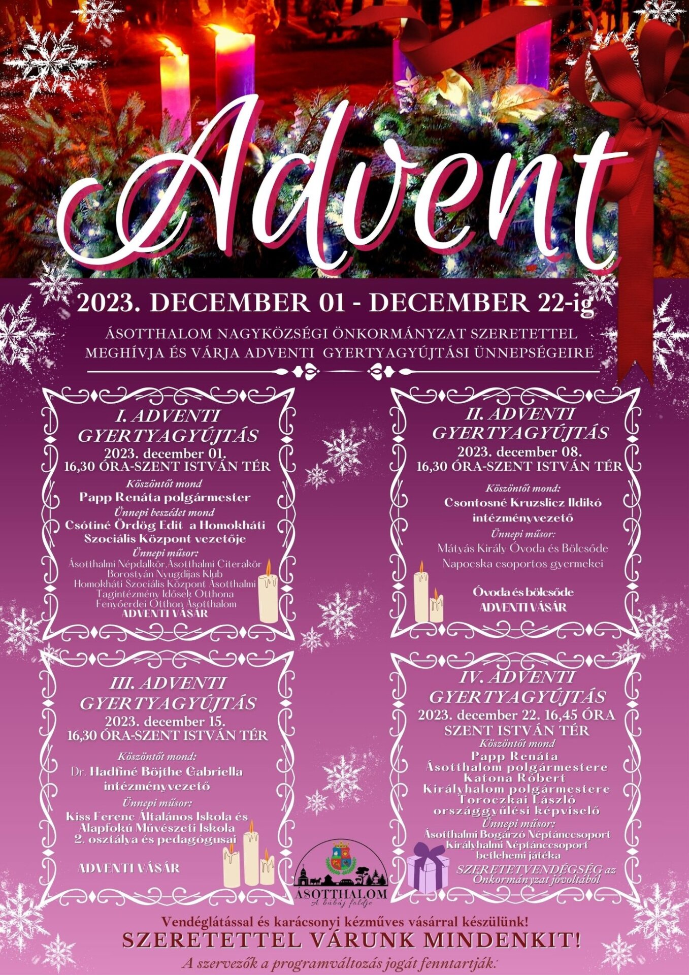 ADVENTI GYERTYAGYÚJTÁSOK ÁSOTTHALMON
