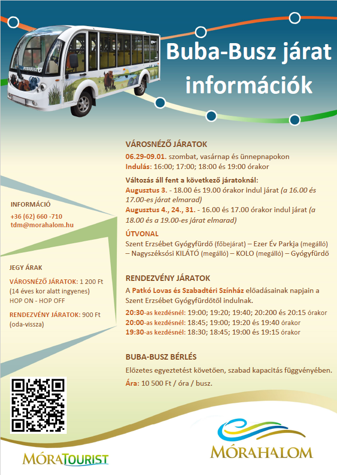 Részletes információ az alábbi telefonszámon: +36 70 374-7224, Móra-Tourist Nonprofit Kft.