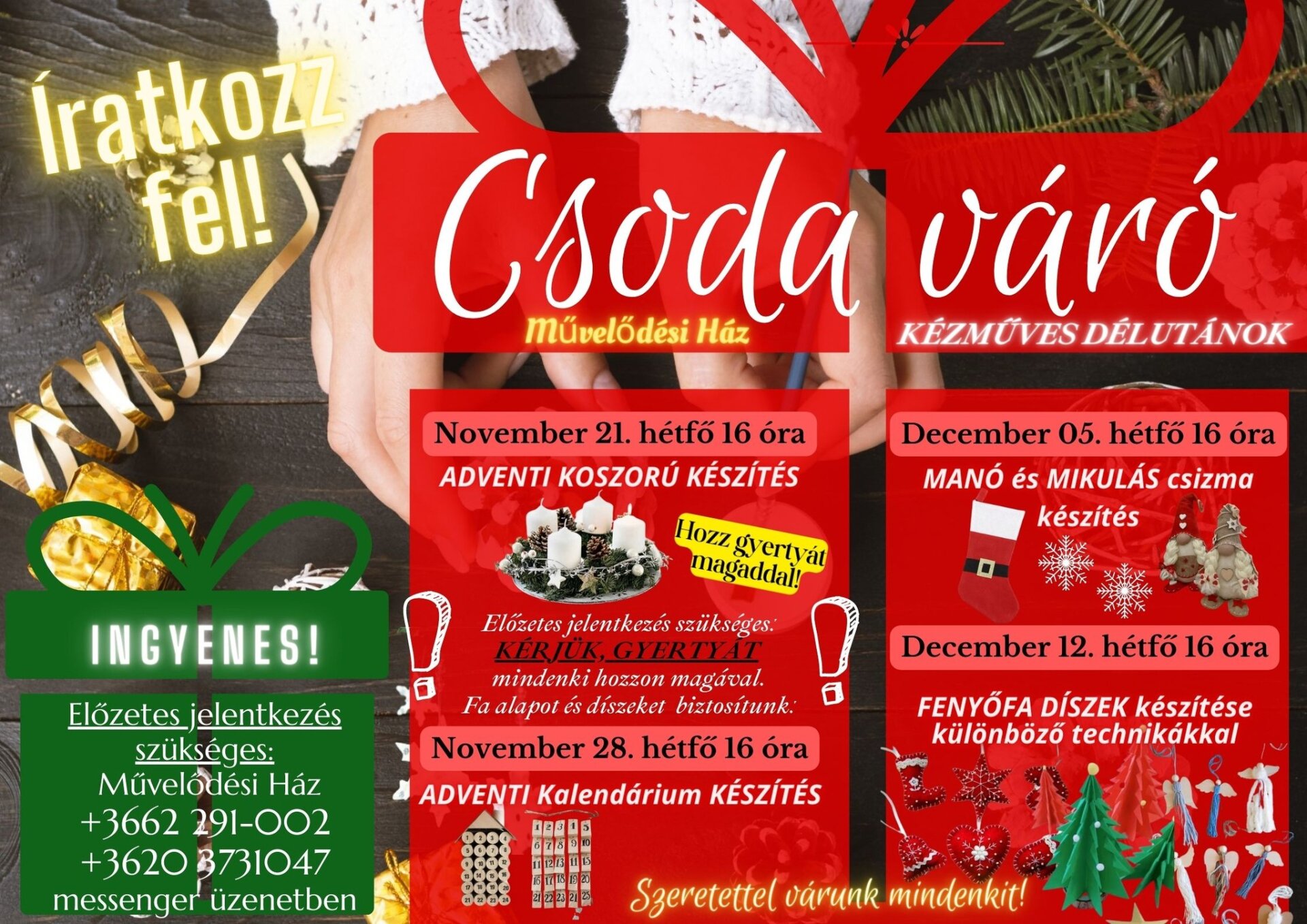 Szeretettel várunk mindenkit! Készülődjünk együtt az ünnepekre!