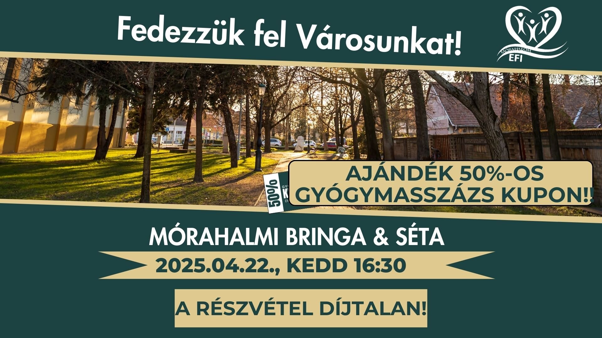 Csatlakozz hozzánk 2025. április 22-én (kedden) a Mórahalmi Bringa & Séta programra, ahol biciklivel és gyalogosan is felfedezhetjük városunk különleges helyszíneit!