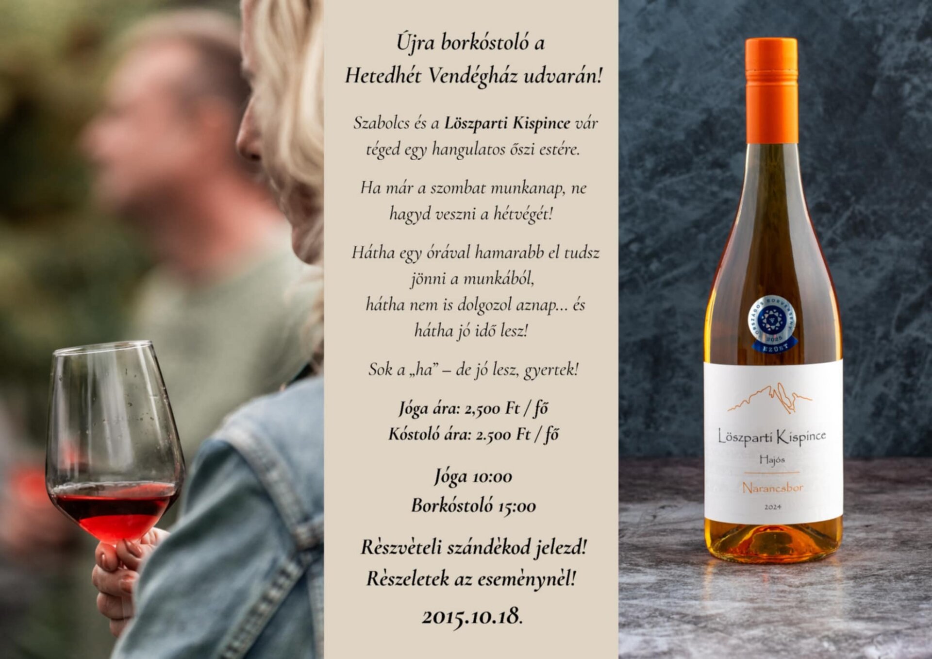 Újra borkóstoló a Hetedhèt Vendègház udvarán Szabolcsal ès a Löszparti Kispincèvel. Ha már a szombat munkanap ne legyen hiába való mègsem a hètvège. Hátha egy órával hamarabb el tudsz jönni a munkából, hátha nem is dolgozol aznap ès hátha jó idő lesz. Sok a ha de jó lesz gyertek.