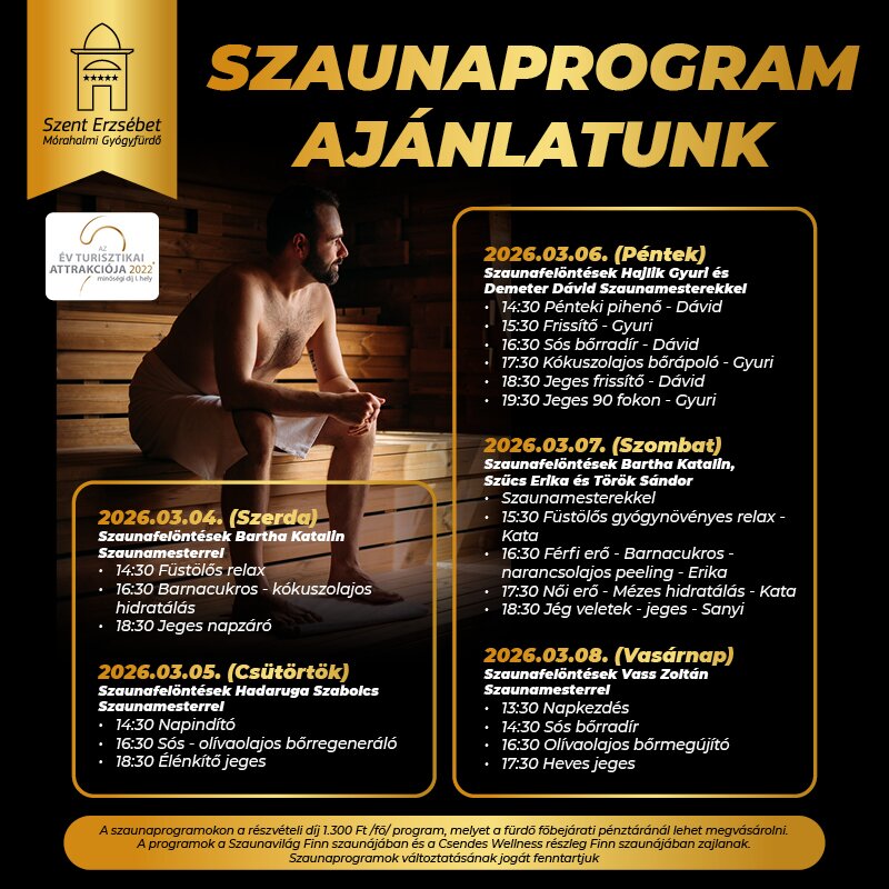 Heti szaunaprogram ajánlatunk