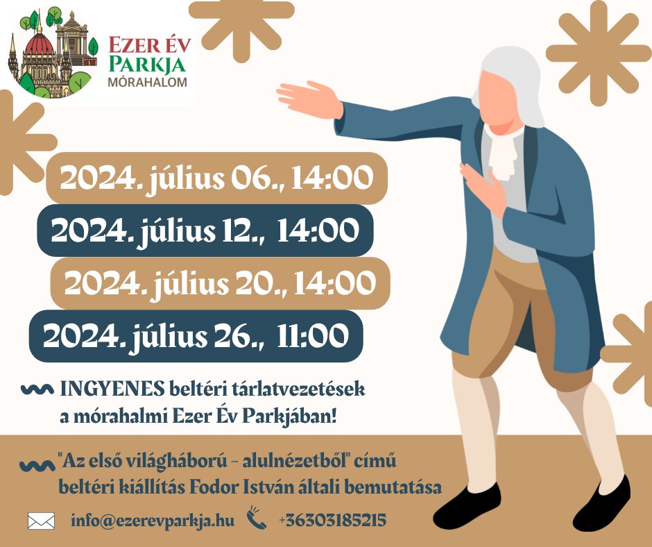 A képen látható időpontokban "Az első világháború - alulnézetből" című beltéri kiállításunk meglátogatása során ingyenes tárlatvezetéseket biztosítunk, Fodor István előadásában.