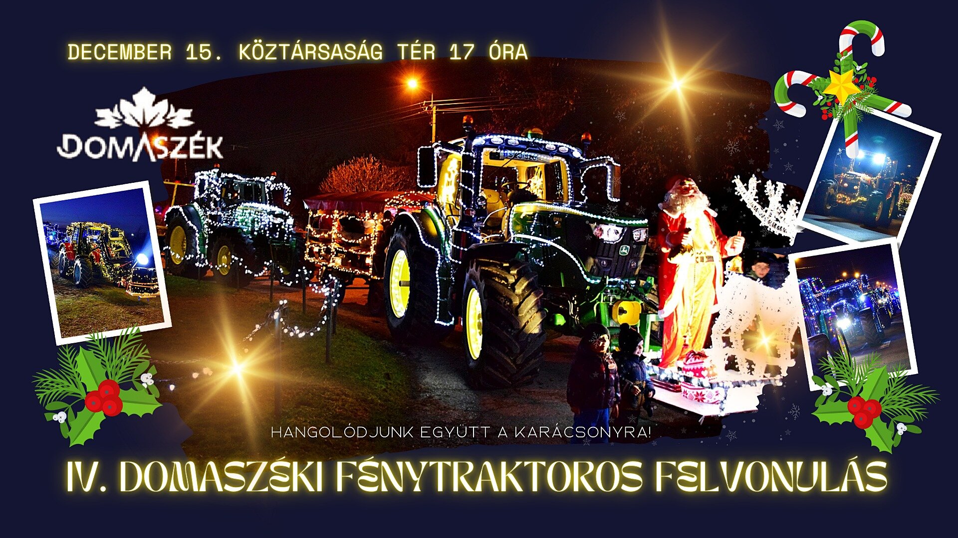 Negyedik alkalommal öltöznek ünnepi díszbe a traktorok Domaszéken, az ország egyik legelső és legnagyobb karácsonyi felvonulásán.