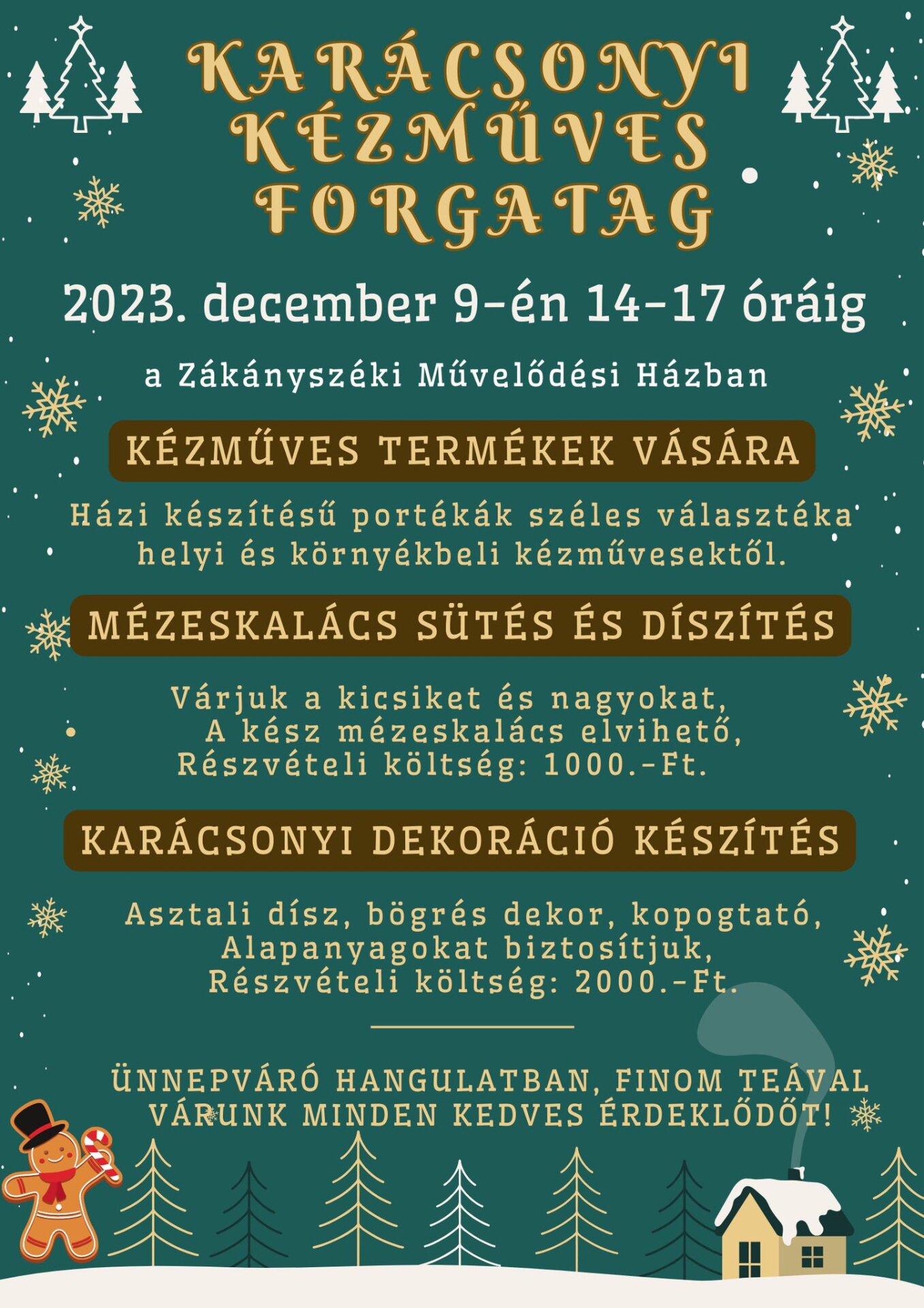 Szombaton Karácsony kézműves forgatag veszi kezdetét a művelődési házban. Mindenkit várunk szeretettel!