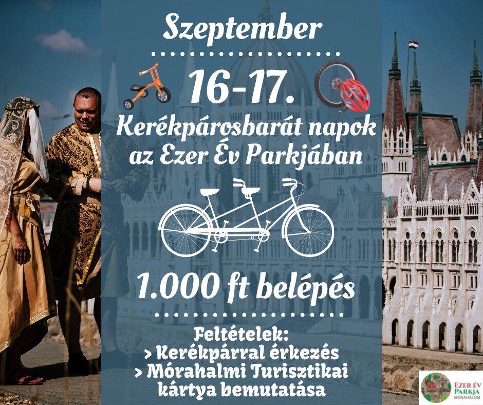 Szeptember 16-17.-én a MAKETUSZ kerékpárosbarát hétvégét tart, melynek célja az időtöltés népszerűsítése. Idén először az Ezer Év Parkja is csatlakozik a programhoz, mint kerékpárosbarát szolgáltató és a program apropóján kedvezményt biztosít: mindössze 1.000 Ft megfizetésével járhatják körbe a makett parkot a kerékpárral érkező látogatók. A Park minősítésnek eleget téve nyújt többek között kerékpártárolási- és telefontöltési lehetőséget, ingyenes vízvételi lehetőséget, szerelőkészletet és persze információt a térség látnivalóiról, szolgáltatóiról.