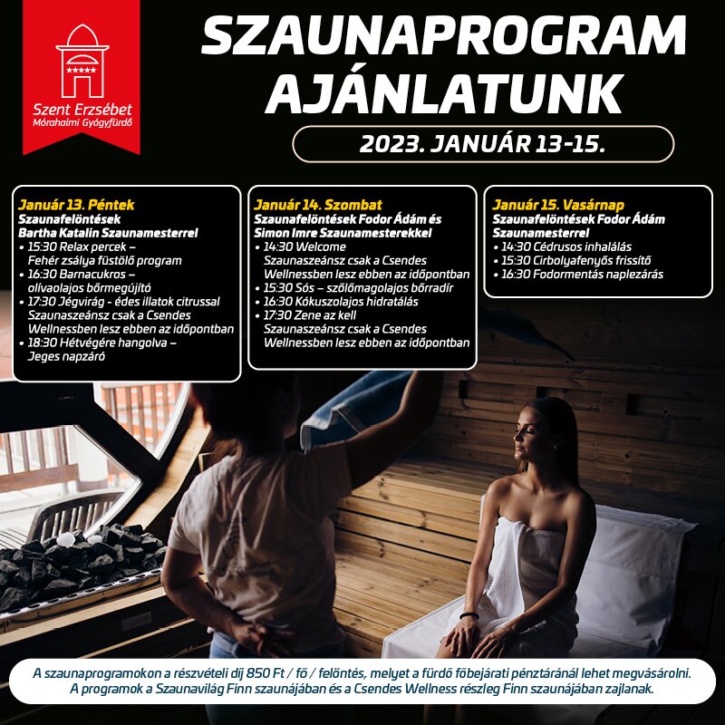Szaunafelöntések pénteken, szombaton és vasárnap!