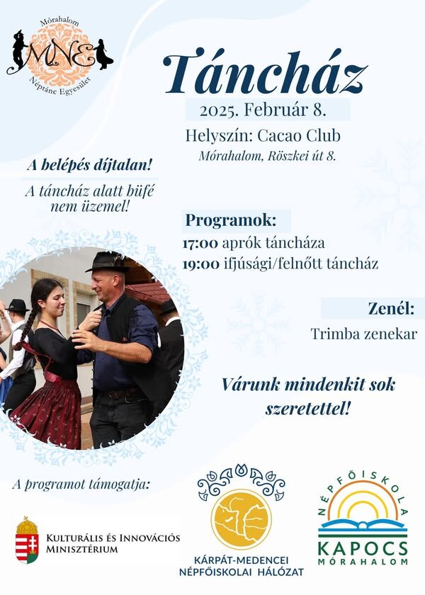 Február 8.-án, szombaton egyesületünk táncházat szervez a Cacao Club-ban.