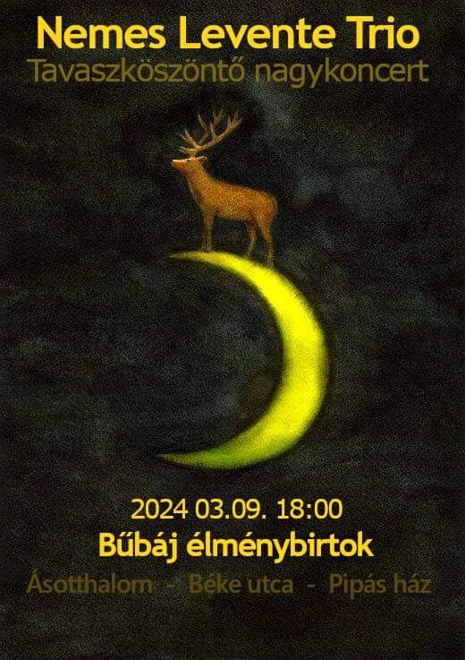 A Nemes Levente Trio szeretettel várja a zene kedvelőit 2024. március 9-én szombaton 18 órától a Bűbáj Élménybirtok Pipás termében.
