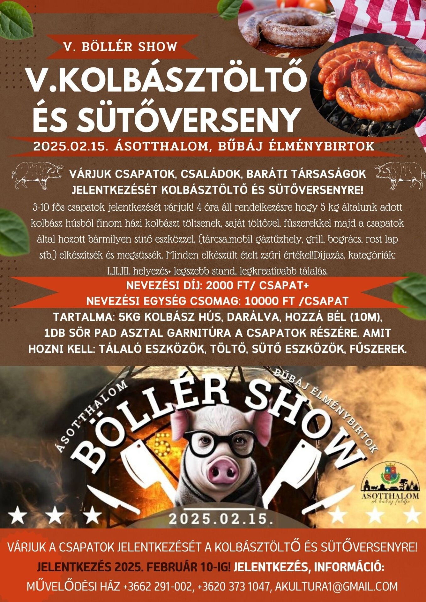 Közeleg a Dél-Alföld egyik legnagyobb eseménye, kicsit több,mint egy hónap múlva megnyitja kapuit az Ásotthalom központjában található Bűbáj Élménybirtok, ahol szeretettel várunk minden kedves látogatót a V. Böllér Show & Kolbásztöltő és sütőversenyre.