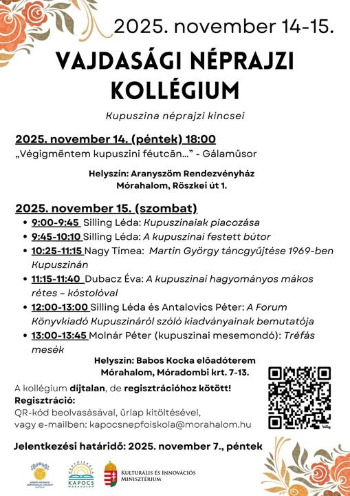 Két napon át Kupuszina értékei, hagyományai és története kerülnek középpontba – előadásokkal, könyvbemutatóval, kóstolóval és egy különleges gálaműsorral.