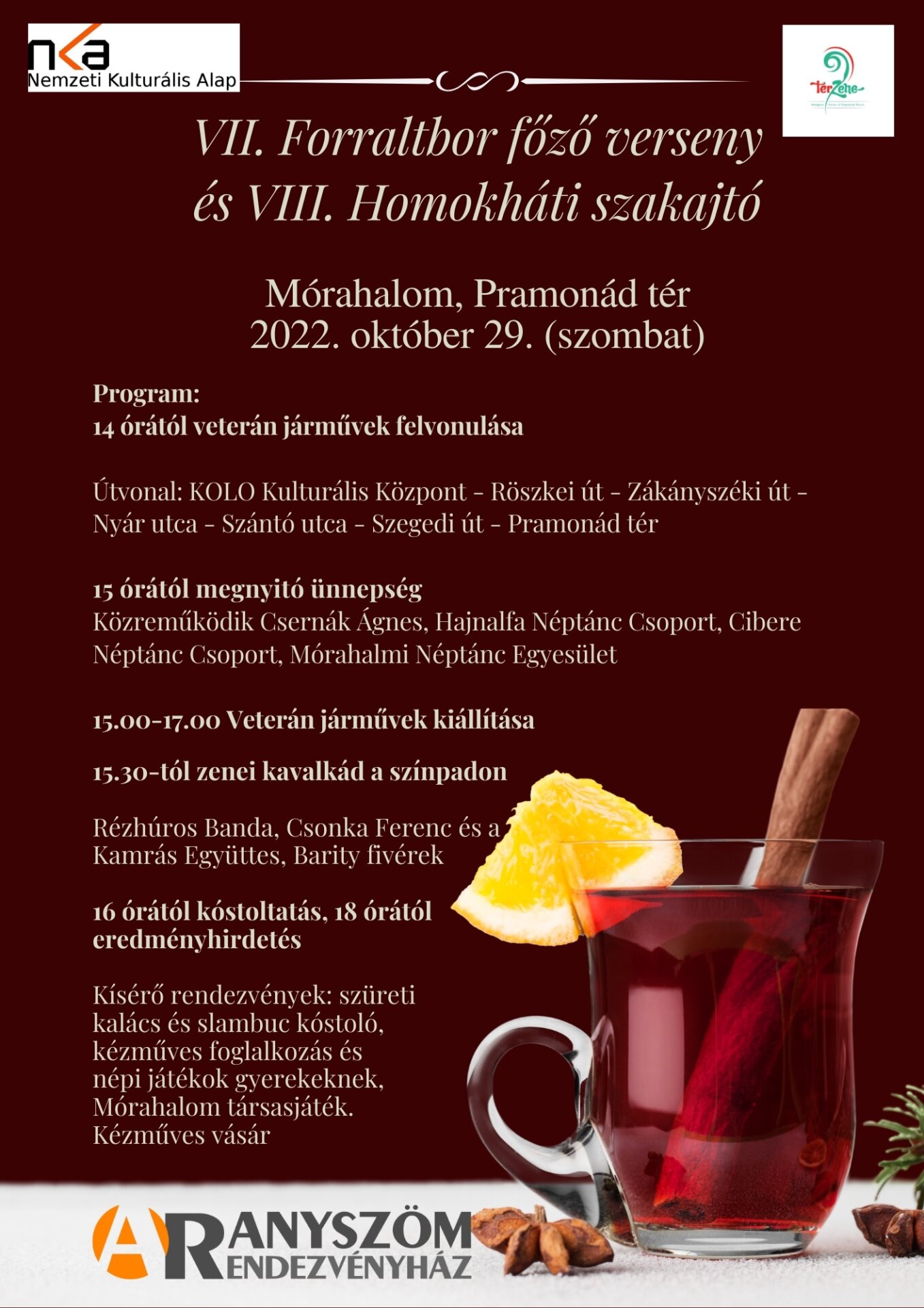 Pramonád téri nagy sátor október 29. (szombat) 15 óra - VII. Forraltbor főző verseny és VIII. Homokháti Szakajtó