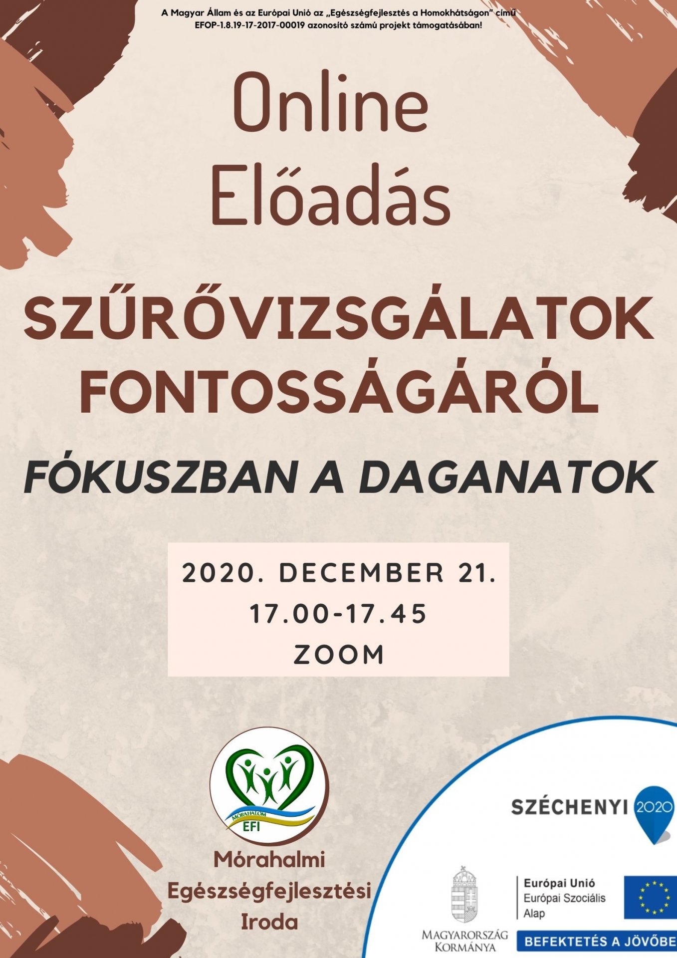 Tudja, hogy Önnek milyen szűrővizsgálatokon javasolt részt vennie? Mit nyerünk a szűrésekkel? Milyen gyakran érdemes ezeken részt venni? Hol és hogyan érhetők el? Első online előadásunkban a daganatok állnak a középpontban.
