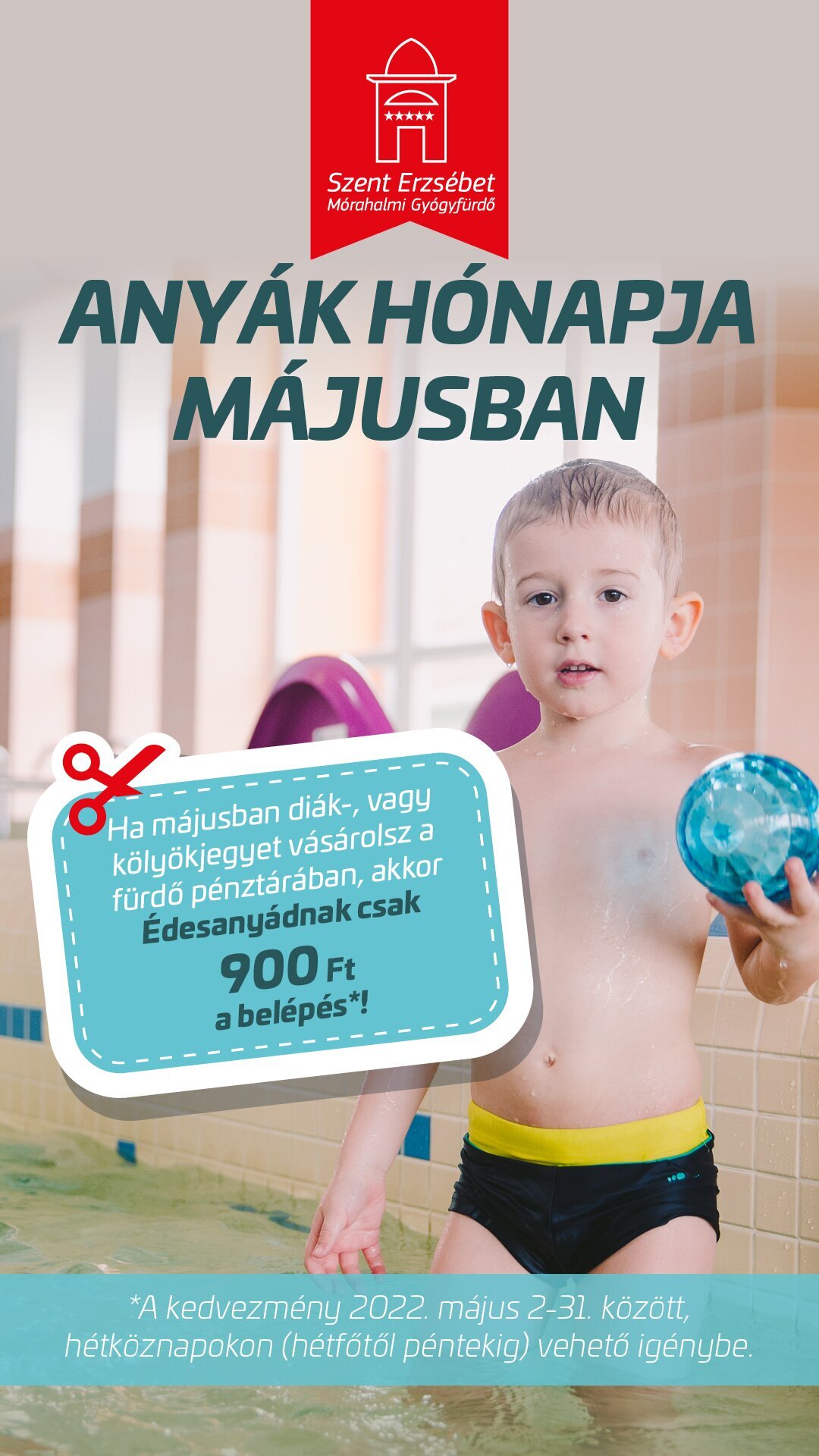 Ha májusban diák-, vagy kölyökjegyet vásárolsz a fürdő pénztárban, akkor ÉDESÁNYAKNAK CSAK 900 FT A BELÉPÉS!