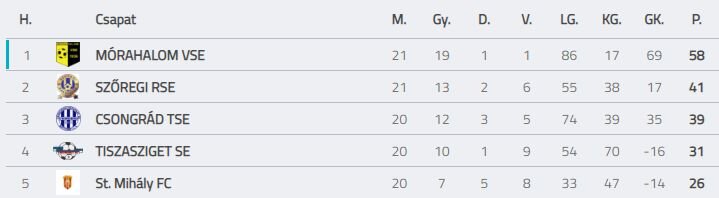 Eldőlt a bajnoki cím az A csoportban, miután bár a Mórahalom döntetlent játszott Csongrádon, a Szőreg azonban egy félidőt emberhátrányban játszva kikapott a Tiszasziget otthonában, így öt fordulóval a vége előtt már behozhatatlan a homokhátiak előnye.