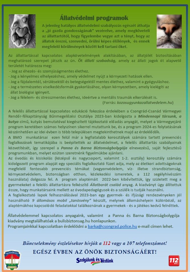 A Csongrád-Csanád Vármegyei Rendőrfőkapitányság Bűnmegelőzési Osztályának tájékoztatója