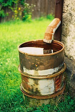 Utóbbi folyamat tetten érhető a lakosság esetében is, ugyanis a tetőről a csatornán keresztül lefolyó esővizet hordókba vagy egyéb tárolóedényekbe lehet engedni a későbbi felhasználás céljából.
