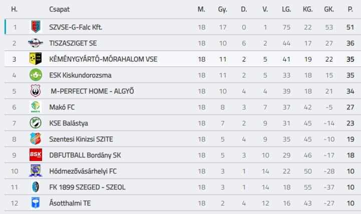 A mórahalmi focicsapat egy feszült hangulatú mérkőzésen, két tizenegyessel fordított a HFC II. vendégeként, és mivel jobb a gólarányuk a Kiskundorozsmánál, így már a harmadik helyen állnak.