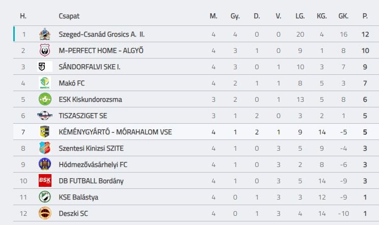 Mórahalom: Mison – Vajda, Mészáros, Rádóczi, Holcsik (Kelemen, 67.), Fehér, László, Pióker Ti. (Szekeres, 78.), Csizmadia (Tajthy, 70.), Bokányi, Szalma (Pióker Ta., 36.). Edző: Papp Endre.