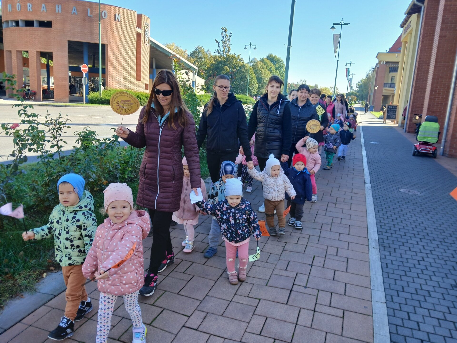A csapat az összes kisgyermekkel és dolgozóval hétfő délelőtt indult a bölcsiből, zászlókkal, zenével színesítve a vidám menetet. Az útjukba eső házakhoz mosolyra fakasztó idézeteket dobtak be, amelyekkel a járókelőket is megajándékozták.