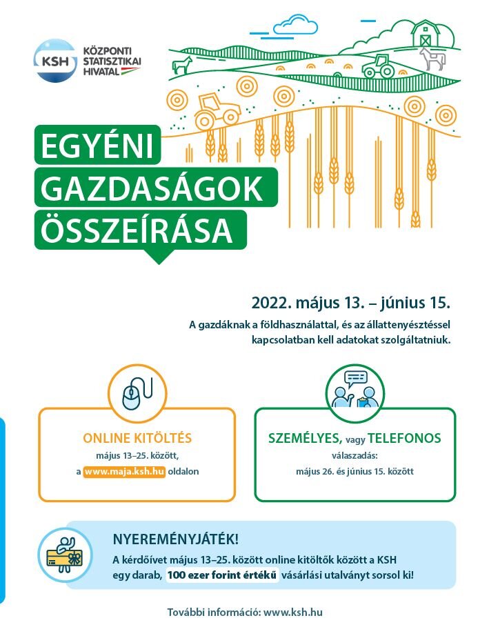 A Központi Statisztikai Hivatal (KSH) rendszeres mezőgazdasági összeírást hajt végre „Egyéni gazdaságok júniusi összeírása, 2022” elnevezéssel.