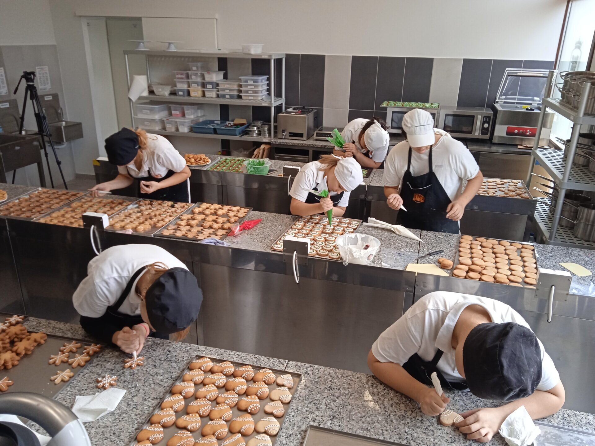 A bemutatón volt cukrászműhely-bejárás, valamint az október óta működő tanműhelyben gyakorlaton résztvevő cukrásztanulók által készített finomságokból – mézeskalács, citromos és karamellás tarte, csokis, málnás és citromos aprósütemények – süteménykóstolót is tartottak.