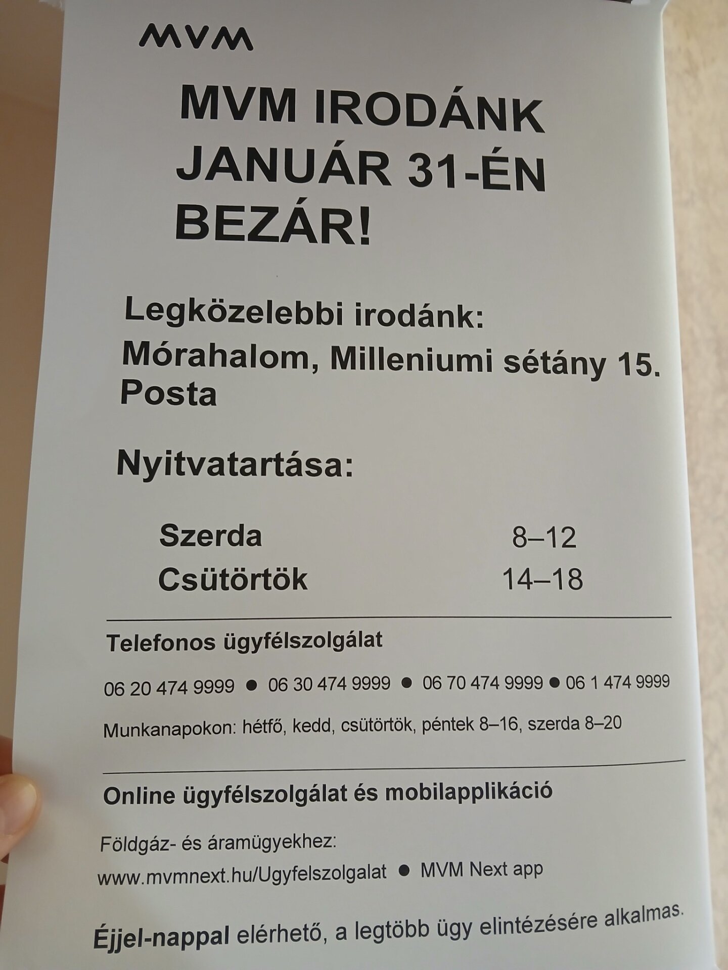 Elköltözik az MVM mórahalmi ügyfélszolgálati irodája