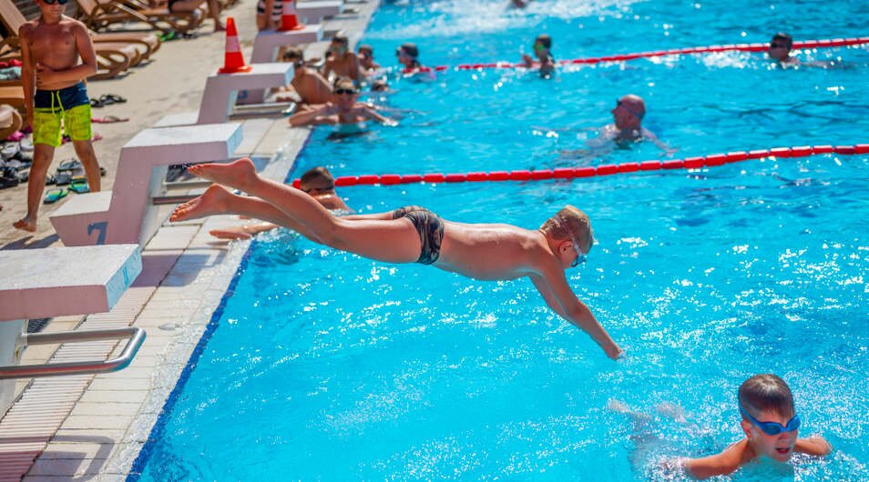 Szerinte az úszáshoz a 25 fok lenne az ideális, a nagy melegben hamarabb elfáradnak a gyerekek. Nem látszott viszont a fáradtság Móricz Kristófon, aki a sok medencét dicsérte, majd az egyik ugrókőről vetette magát a hűsítő vízbe.