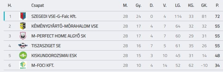 A Mórahalom két bombagóllal nyert Kiskundorozsmán, így a Tiszasziget, Algyő, Mórahalom trió egyaránt 55 ponttal áll.