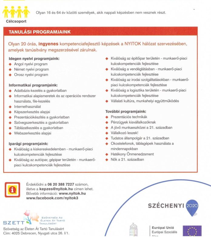 A NYITOK hálózat szervezésében a következő tanfolyamokra, illetve programokra jelentkezhetnek az érdeklődők.