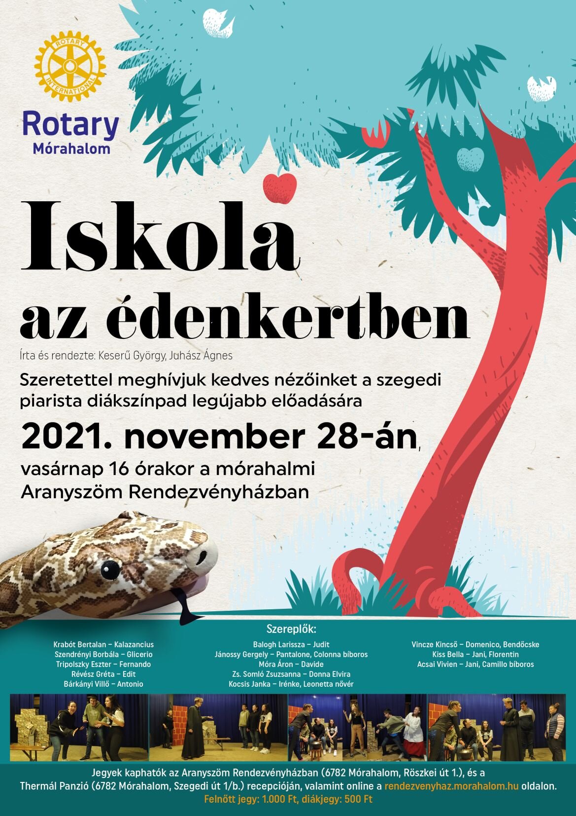 A Rotary Club Mórahalom szervezésében a Szegedi Dugonics András Piarista Gimnázium diákszínpad legújabb eladásával várjuk az érdeklődőket advent első vasárnapján 2021. november 28-án (vasárnap) 16,00 órai kezdettel Mórahalmon az Aranyszöm Rendezvényházban.
