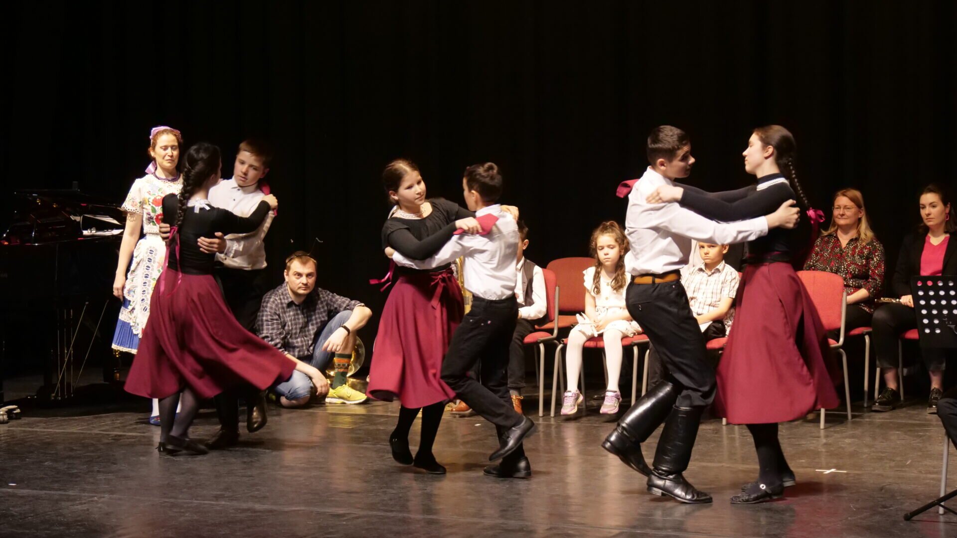 Az iskolában tanító pedagógusok játékos formában meséltek a hangszerekről a kicsiknek, akik a koncert végére bizonyára el is döntötték, hogy jövő ilyenkor ugyanezen a színpadon állva muzsikáljanak-e, vagy inkább a táncos lábú diákok példáját kövessék.