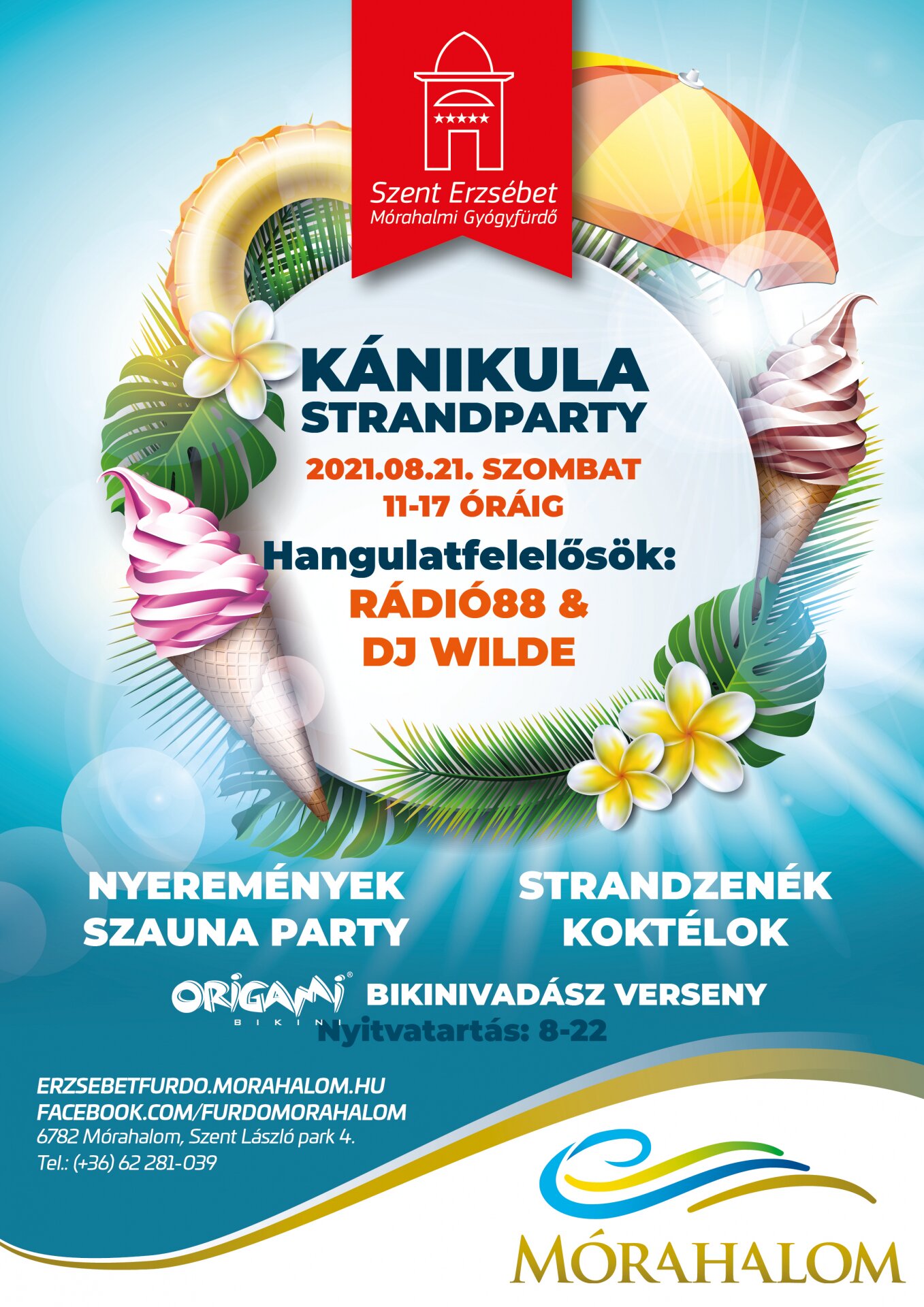 2021. augusztus 21-én (szombat) Kánikula Strandparty a Szent Erzsébet Gyógyfürdőben! #csobbanjvelünk szaunaprogramokkal és bikinivadászattal! A hangulat biztosan fergeteges lesz, a legjobb strandzenéket DJ W!LDE és a Rádió88 pörgeti Neked!