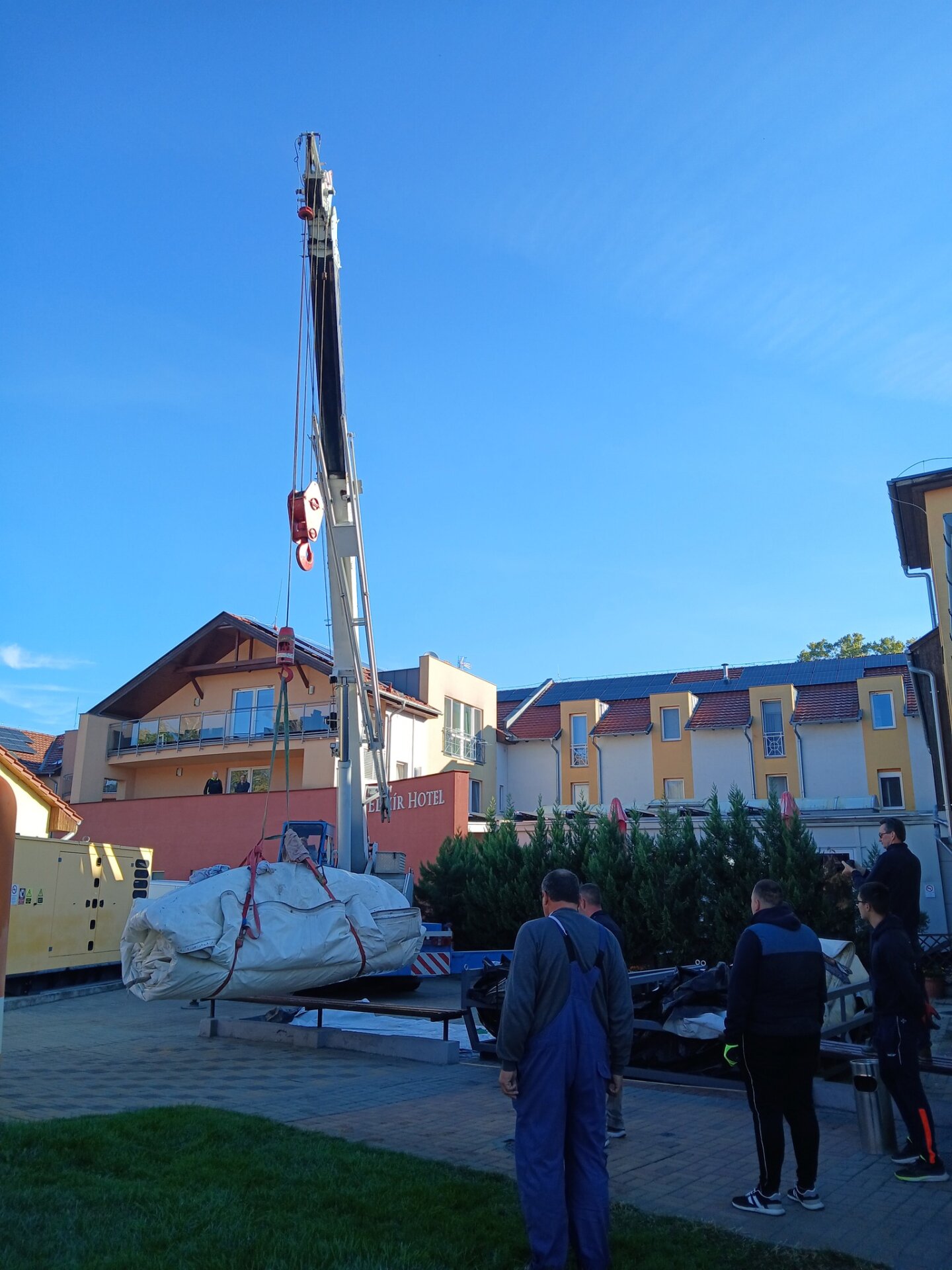 Kedden megérkezett a daru, amelynek segítségével első körben az úszómedence aljára helyezték a hatalmas sátrat. Ezt kihajtogatják, majd felfújják és rögzítik. Mindezt azért, hogy a vendégeknek télen se kelljen lemondani az úszásról. A sátor alatti kellemes hőmérsékletű, 28-29 fokos vízben október 19-től fürdőzhetnek a látogatók.