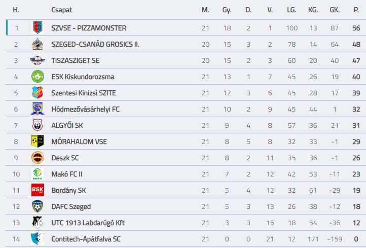 Hódi Mihály legénysége a DAFC Szeged együttesét fogadta szombaton. Jól alakult a találkozó együttesünk számára, hiszen Tóth Martin találatával vezetést szerzett az első félidő közepén majd ezt követően Malatinszki Ádám 31-dik percben megduplázta fölényt és végül Budai Bálint 38-dik percben iratkozott fel a hazai góllövő listára. A szünetet követően a DAFC csapatának csak a szépítésre futotta Kiss Barnabás találatával. Együttesünk 29 ponttal a 8. helyen áll, a mezőny pedig továbbra is sűrű, hiszen a 6. Hódmezővásárhely is „csak” három pontra van tőlünk.