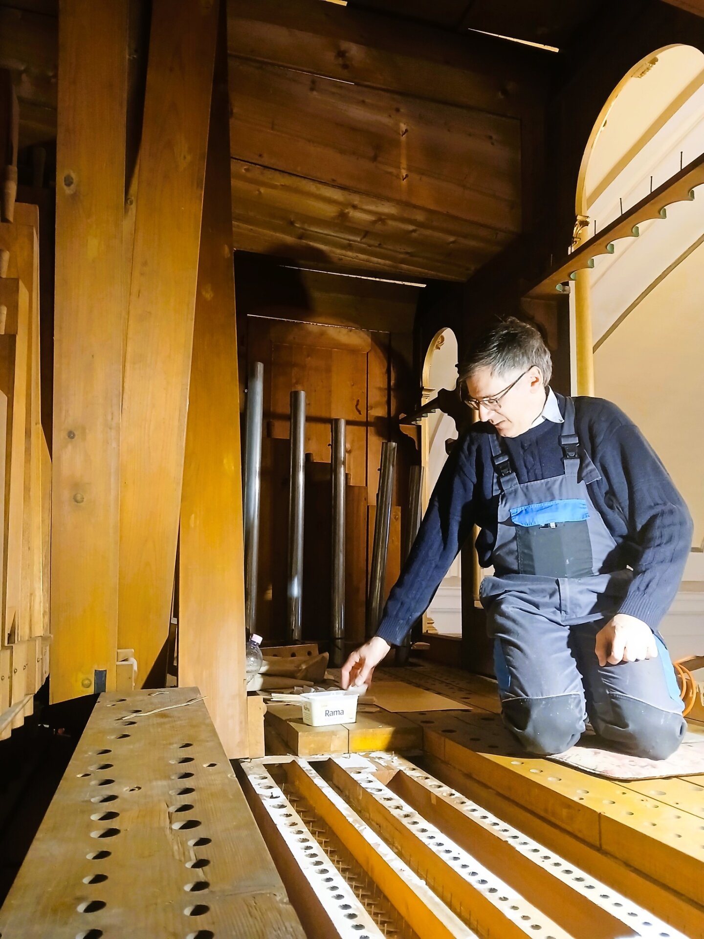 Nagy Péter orgonaművész és orgonajavító kezei által épül újjá a hangszer. Első körben az orgona lelkét, a szerkezeti részt renoválja, itt vannak a szelepek. Ehhez ki kellett szerelni a hangszer 750 sípjának nagy részét.