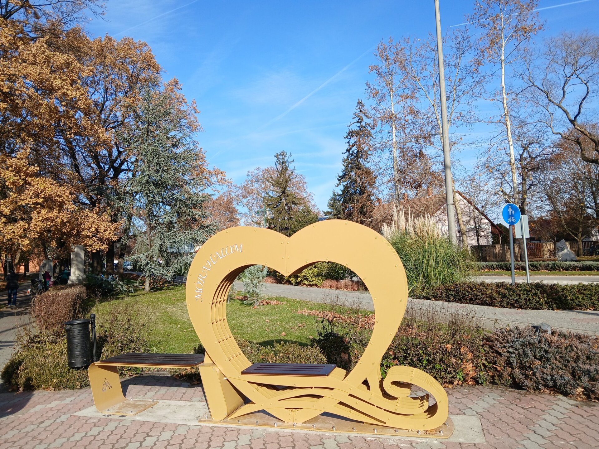A körforgalomnál, a templom és a fürdő szomszédságában felállított arany szív nemcsak fotózkodásra csábít, a hozzá épített padon megpihenhet az arra járó. Volt, aki már ki is próbálta.Duka Félix este készült fotóján pedig jól látszik, a sötétben is igazodási pont lehet Mórahalom szíve.