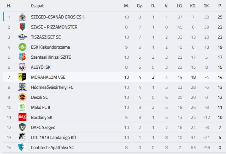 Újra nyert, és tartja negyedik helyét a Kiskundorozsma, amely korábban is eldönthette volna a Mórahalom elleni mérkőzését. A győztes gólra végül egészen a 83. percig kellett várni, amikor Kalapács húzta át magát a védőin, majd beadására Takács érkezett, és passzolta azt a vendégek kapujába.