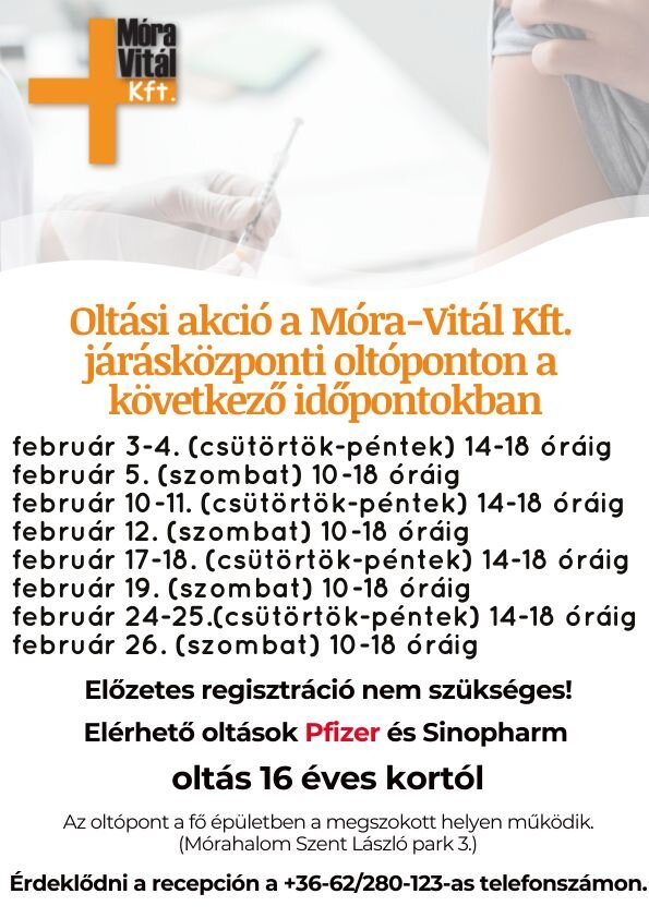 Oltási akció februárban is a Móra-Vitál Kft-nél