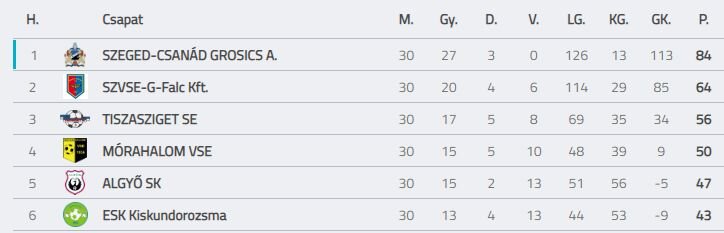Mórahalom, 80 néző. Vezette: Tóth Csaba – kiválóan (Tasnádi, Nagy N.)