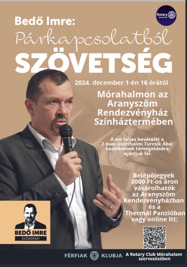 Tisztelettel és szeretettel várunk mindenkit 2024. december 1-jén az Aranyszöm Rendezvényházba Bedő Imre előadására, amely 16 órakor kezdődik.
