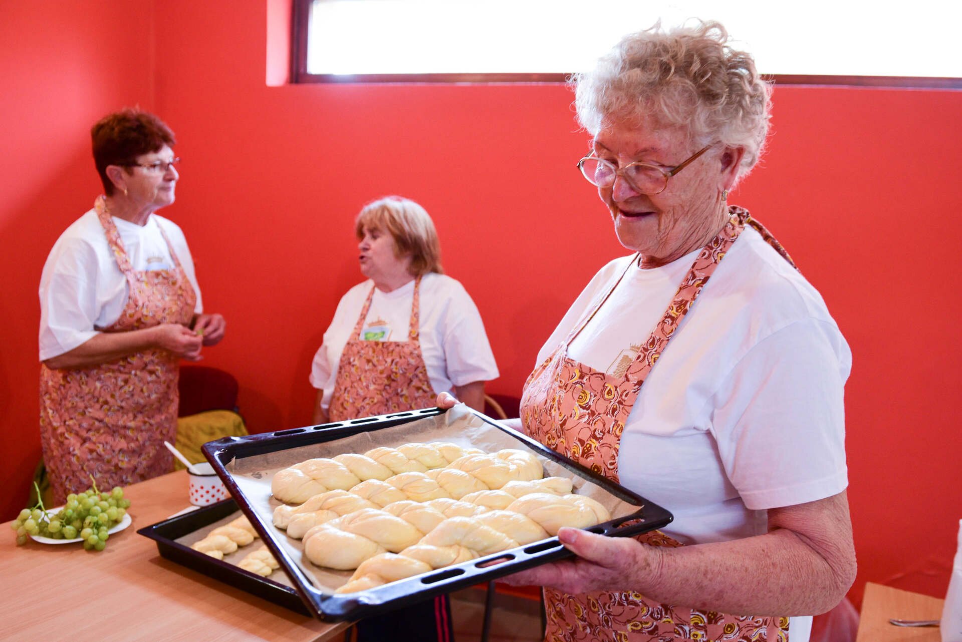 Az Aranyszöm Rendezvényházban különböző állomásokon várták a gyerekeket. A Bástya és a Napfény Nyugdíjas Klub tagjai például házi süteményekkel érkeztek, volt cukormentes almás, omlós tészta gyümölccsel, kevert almás, kókuszkocka, meggyes-kakaós szelet és hagyományos kelt kalács, aminek készítésébe a gyerekek is beszállhattak.