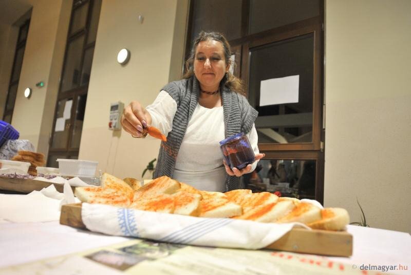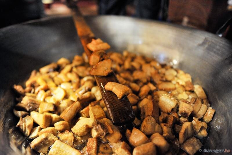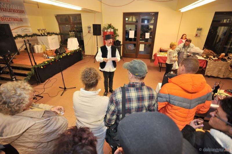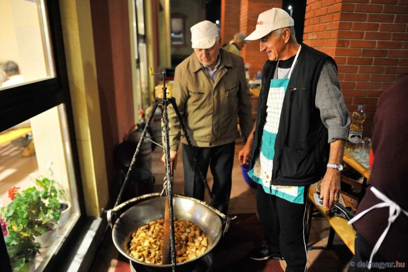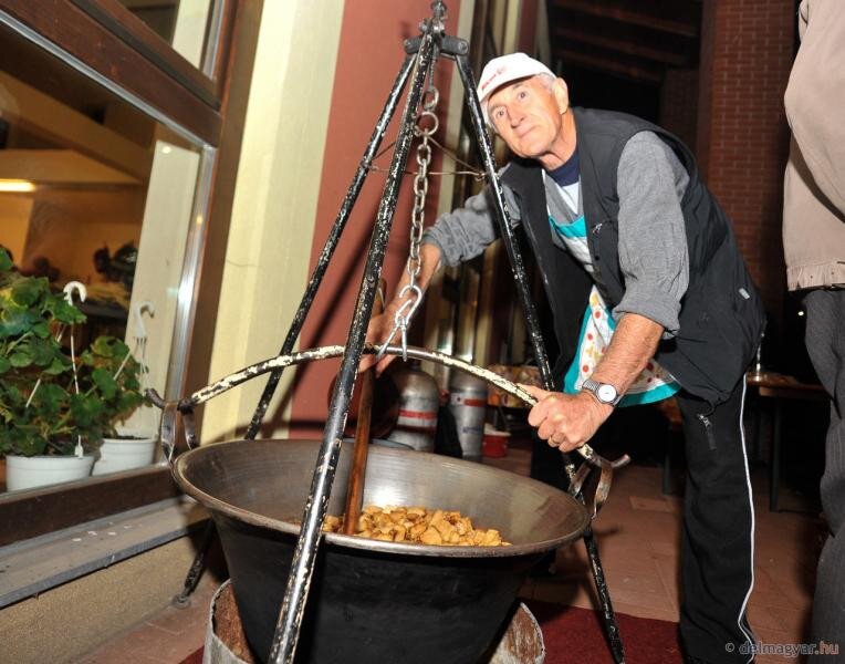 Idén is megtelt a piactér környéke és a csarnok. Míg kint a tepertők sültek, odabent a szakértő zsűri kóstolta az 55 párlatot. – Mi vagyunk az utolsók, de az igazi töpörtyű kisütése minimum három óra. Mi a Vajdaságban így csináljuk – mondta a Ludasról érkezett csapat egyik tagja, Engi Péter. A vajdaságiak délután kettőkor kezdték el sütni a tíz kiló saját és tíz kiló versenyre kapott tepertőt, ami még ötkor is gyöngyözve sült a bográcsban. A többi három csapat tepertője már el is fogyott, mire a vajdaságiak elkészültek.