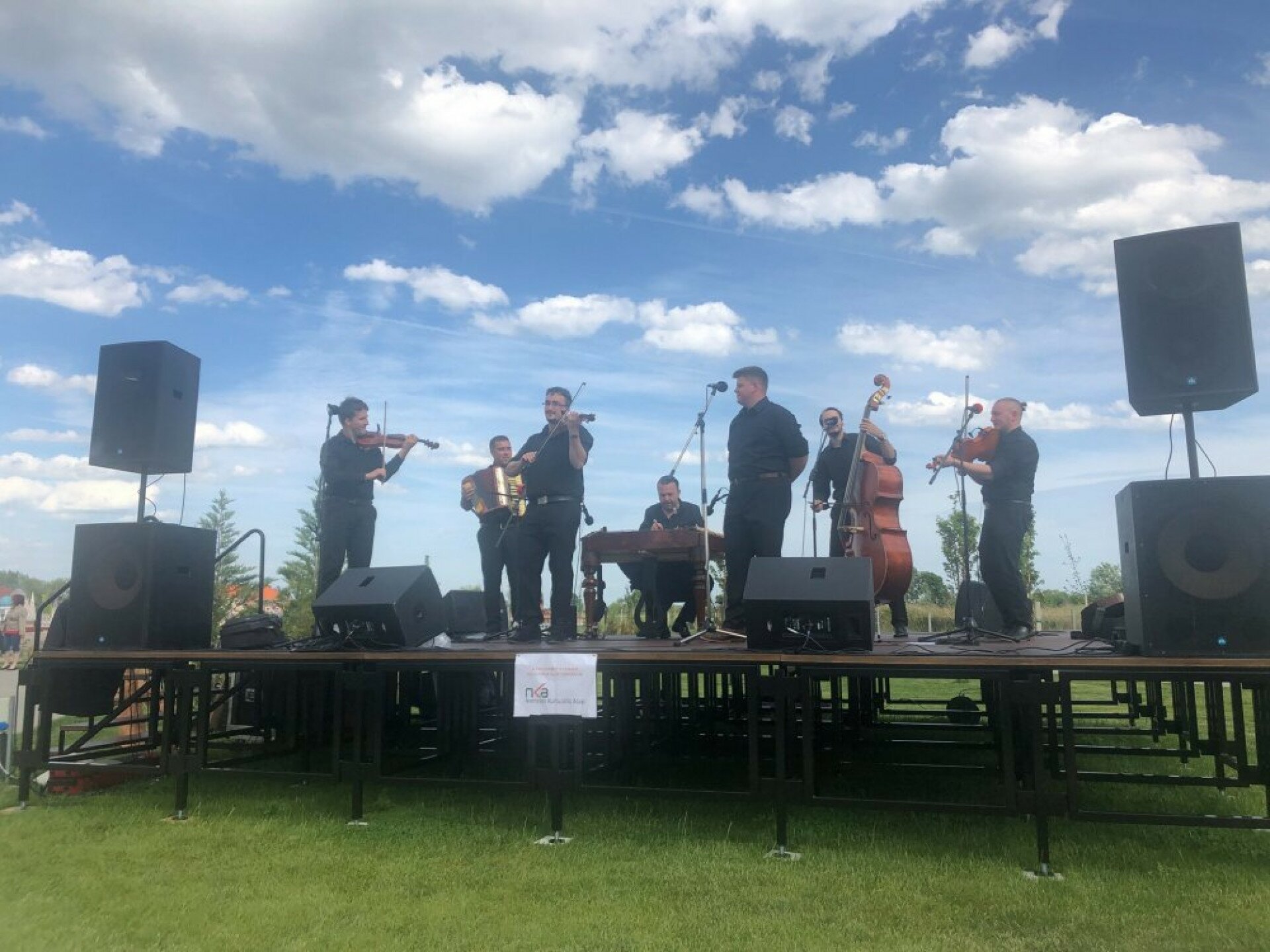 Természetesen az eszközöket programokkal kívántuk felavatni, így az elmúlt 2 vasárnap a Fokos Zenekar és a Juhász Zenekar fantasztikus játékát élvezhették az érdeklődők. Az időjárás egyik alkalommal sem kedvezett, hiszen először a Fokos koncertjének végéből a szélvihar csípett le egy kicsit, másodszor pedig az eső szólt közbe. No de a Juhász Zenekar az 5 perces színpadi kezdés után maga után híva a nézőket, felköltözött a park fogadóépületének teraszára és igen jó hangulatot teremtve oszlatta el a felhőket és borús kedvünket. (A műsor végére az eső is elállt, a nap is kisütött!). Köszönjük mindenkinek a kitartást, folytatás következik!