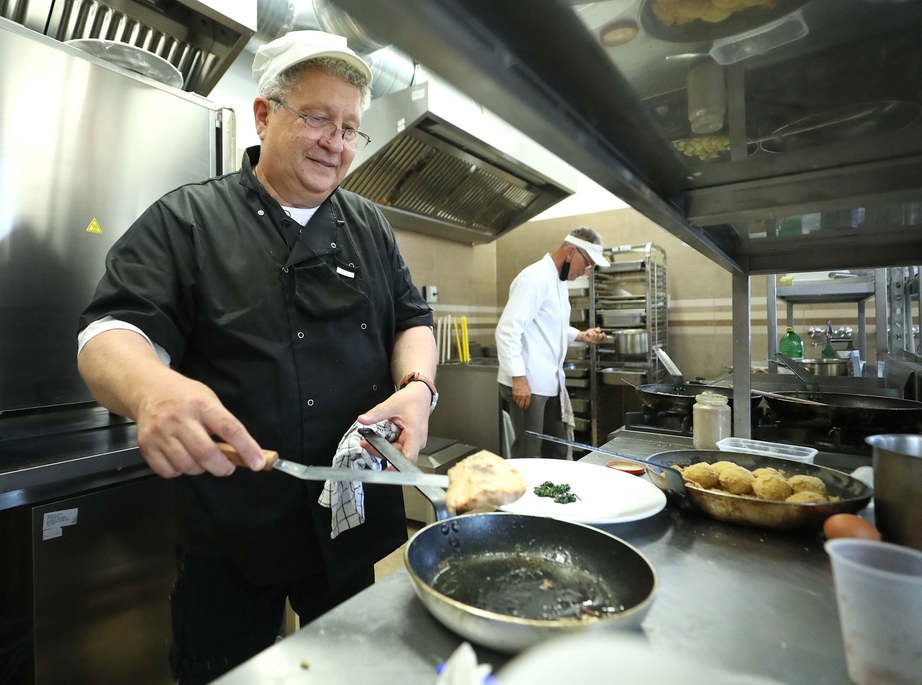 – Elfáradtam, kemény volt – szusszant nagyot az öltözőben a Szegedi SZC Tóth János Mórahalmi Szakképző Iskola és Garabonciás Kollégium legidősebb diákja, a 62 éves Duka Félix, aki nem túlzott, homlokán izzadság gyöngyözött, pólóján elöl-hátul hatalmas izzadságfolt terjedt.A konyhában sertepertélt